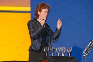 Irene bespeelt zes gestemde glazen (foto), waarmee ze zichzelf begeleidt in het lied Rubaiyat van haar zus, componiste Sylvia Maessen. Zie het uitgebreide programma overzicht en CD’s.